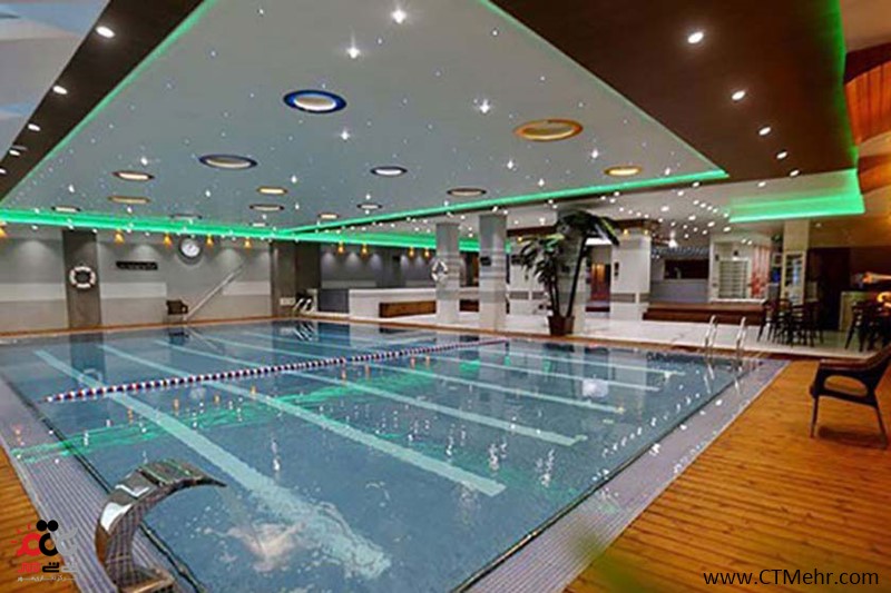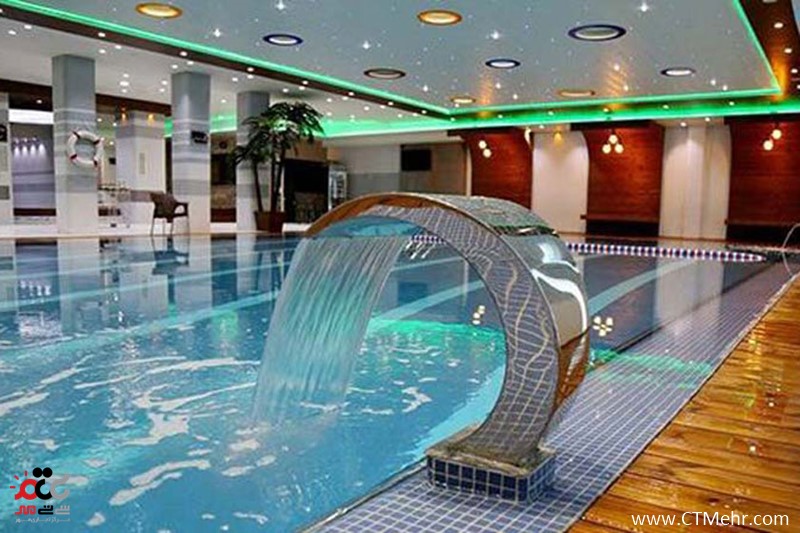 مشخصات : طول استخر : ۱۶ متر ** عرض استخر : ۹ متر ** کمترین عمق استخر : ۱ متر ** بیشترین عمق استخر : ۲.۸ متر ** نوع تصفیه : کلر با فیلتر شنی