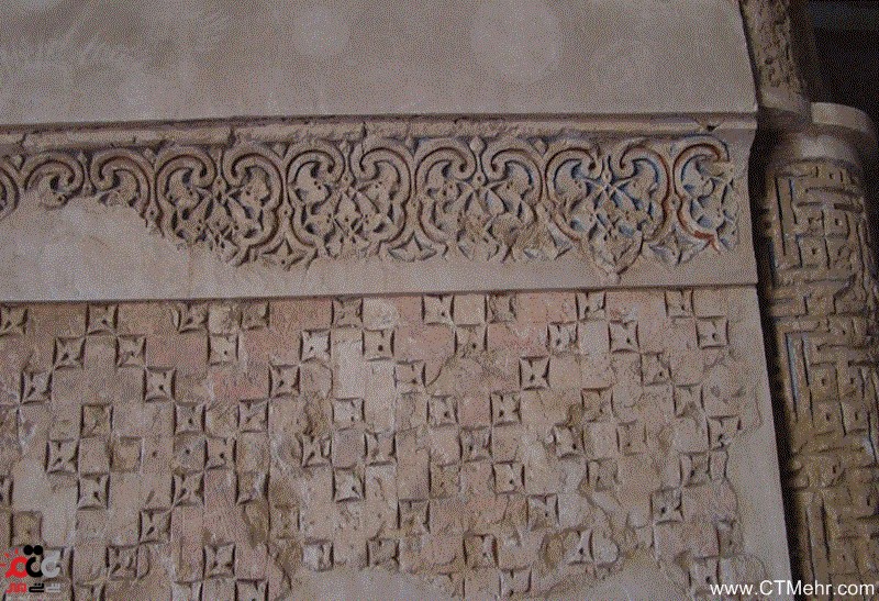گوشه ستونها دارای ستونچهها و ستون نماییهای با طرح مارپیچی بوده و در محدوده لنگه طاقها با نوعی گچبری دیده میشود. روی یکی از پشت طاقهای زیر گنبد نیز قطعاتی از کاشی سفید و آبی قابل ملاحظه است. در مجموع به نظر میرسد گچبریها، نقشاندازیها و تمامی این تزئینات، پیرامون محوطه محراب متمرکز بوده است . کتیبه فضای داخلی بنا روی زمینه گل و برگ بسیار زیبا تزیین و به ۶ آیه اول سوه ۴۸ قرآن کریم «الفتح» به جز ۴۵ کلمه میانی آن است. «بسم الله الرحمن الرحیم، انا فتحنا لک مبینا، لیغفر لک الله ما تقدم من نبک... و سائت مصیر» بر حاشیه فوقانی آن نیز بخشی از آیات دیگری از سوره قرآن کریم «عم یتسائلون» به خط کوقی تزئینی کتیبه شده است. سایت سی تی مهر شما را به بازدید این مکان دعوت میکند.