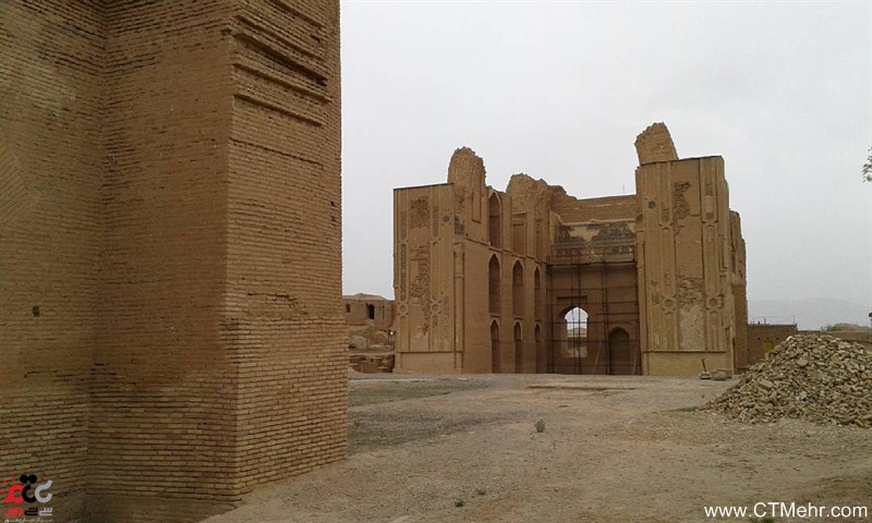 این مسجد دومین مسجد تاریخدار دوره خوارزمشاهیان است که به استناد کتیبه موجود در سال ۶۱۵ ه.ق و یک سال پس از آن در حال ساخت بوده است. آنچه در حال حاضر از معماری بنا باقی مانده، دو ایوان کوچک و بزرگ مقابل هم در اضلاع شرقی غربی است که هسته بنای عظیمی بوده که برخی معتقدند به عنوان مسجد-مدرسه بنیان شده و به دلیل حملات سپاهیان مغول در ۶۱۷ ه.ق کار بنای آن نیمه تمام رها شده است. این که آیا این بنای تاریخی مسجد- مدرسه بوده را شیلر با تحقیقاتی که انجام داده و بر اساس کتیبهای که یافته مطرح کرده که برخی آن را رد کردهاند.در شبستان غربی این مسجد، پلکانی وجود دارد که به طور مارپیچی بر حول استوانهای از آجر میچرخیده و موذن را به گلدستهها میرسانده است؛ پلکان زاویه راست در زلزلههای اخیر به کلی متلاشی شده و هم اکنون قامت از هم پاشیده آن در پشت شبستان دیده میشود که مربوط به زمان بازدید محمدرضا خسروی بوده که در حال حاضر مرمت و احیا شده است. اما پلکان سمت چپ همچنان تا فرق بنای باقی مانده از مناره باقی است. در قسمت غربی ایوان قبری وجود دارد که گفته میشود متعلق به پسر ملک زوزن است. یکی از شبستانها به محراب مسجد منتهی میشود، محرابی که به تازگی بر اثر حفاری از زیر آوار بیرون آمده است. حاشیههای این محراب مزین به آیاتی از قرآن است. از بنای عظیم مسجد ملک زوزن که در دهه اول قرن هفتم ساخته شده است اکنون جز دو ایوان از هم گسسته چیزی باقی نمانده و دو ایوان باقی مانده مسجد رو در روی هم و به فاصله ۴۵ متر از یکدیگر قرار دارند. این دو ایوان یکی با نام «ایوان قبله» و دیگری با نام «ایوان مقابل قبله» شهرت یافتهاند. با اینکه دو ایوان (ایوان قبله و ایوان مقابل ِ قبله) قرینه هم و روبروی هم ساخته شدهاند کاشیکاری و تزیینات آنها متفاوت است. ستونها در این قسمت هم هستند و دقیقا همان وضعیتی که در آن ایوان بوده مثل کفسازی نشدن و نیمهکاره رها شدن تزیینات و... در این ایوان هم مشاهده میشود.