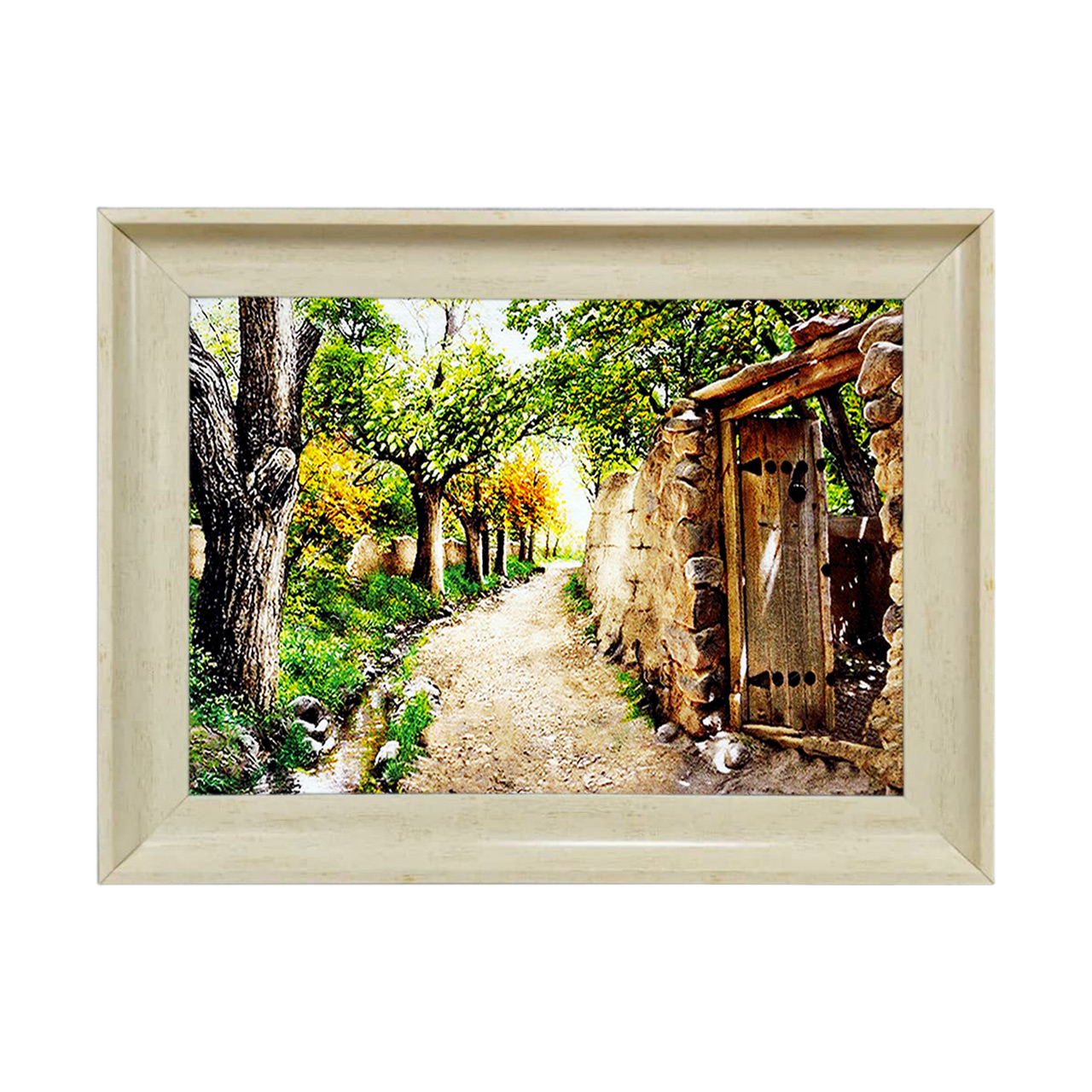 تابلو فرش چاپی طرح کوچه باغ کد 10076 سایز 50×35 سانتی متری
