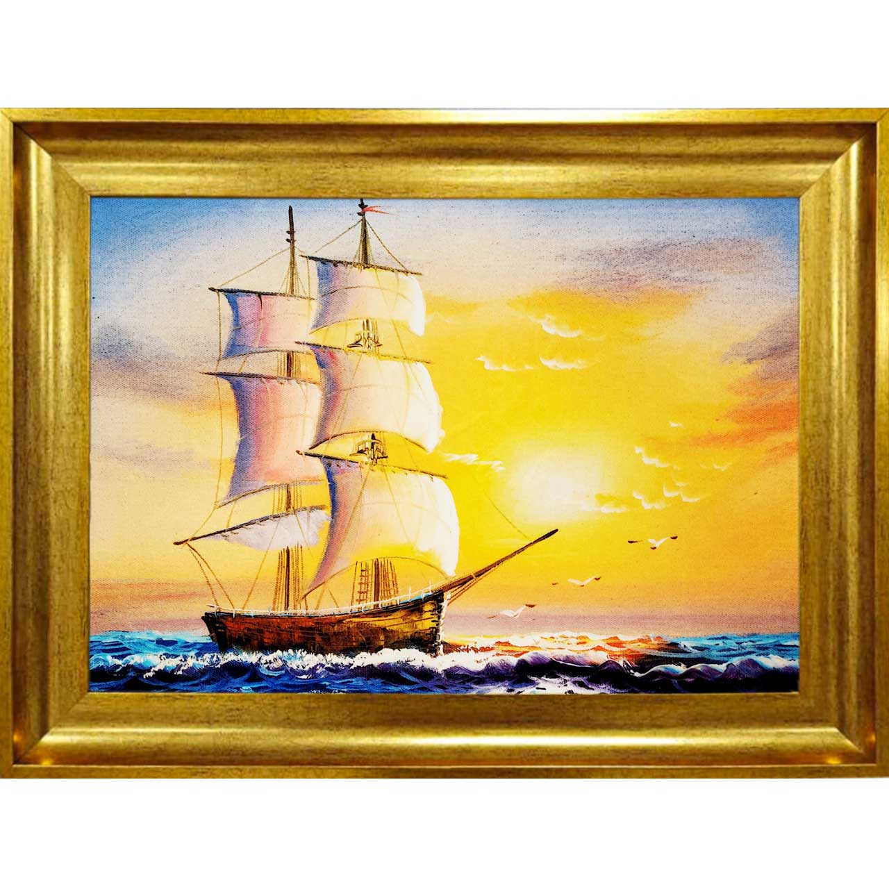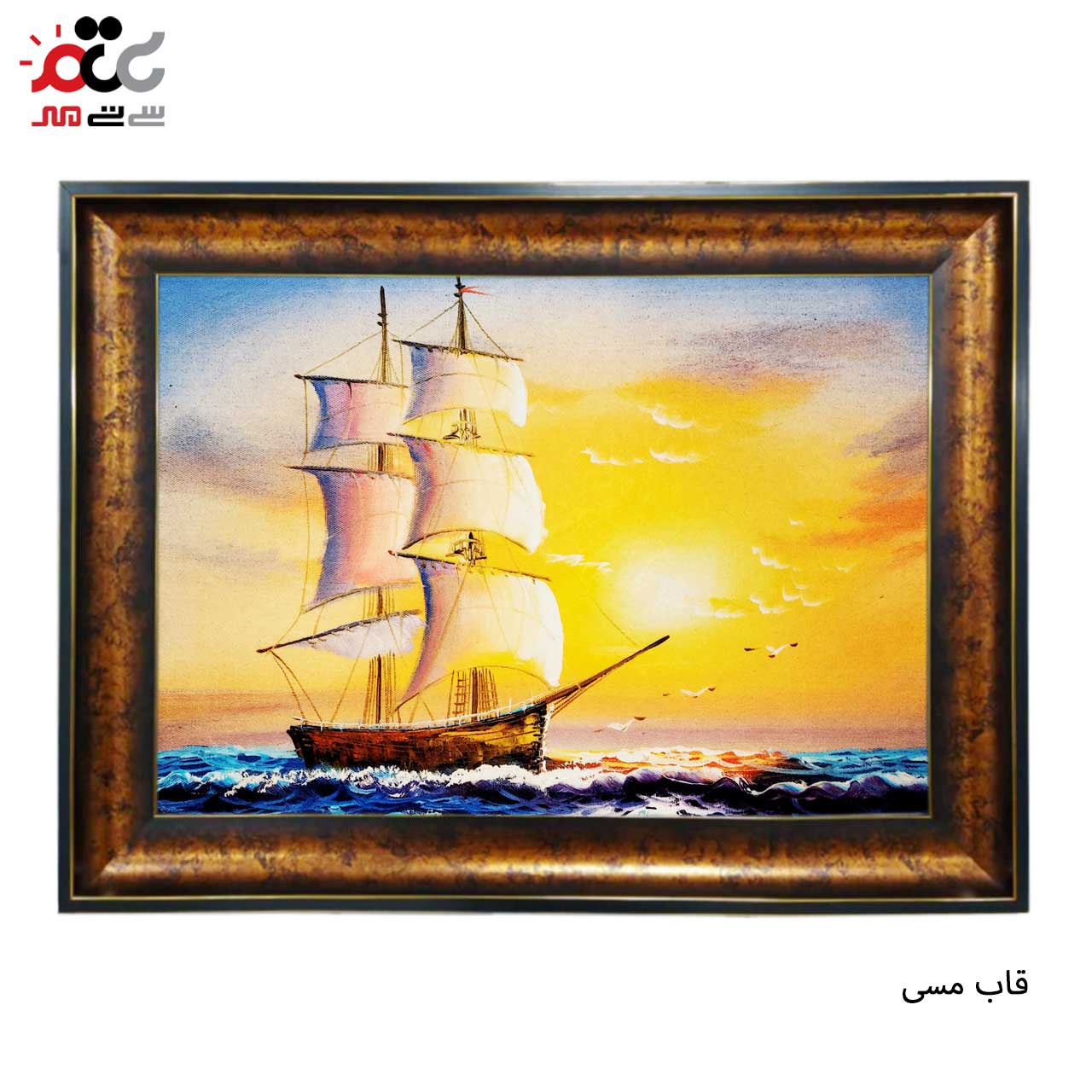 تابلو فرش طرح منظره ی کشتی و غروب پاییز دریا کد 10242 سایز 100×70 سانتی متری