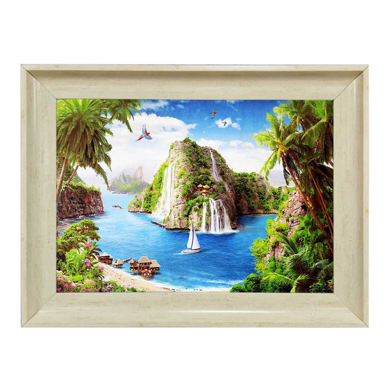 تابلو فرش طرح طبیعت زیبایی آبشار و دریاچه کد 10123 سایز 60*40 سانتی متری