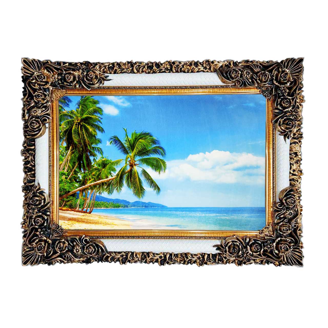 تابلو فرش طرح منظره درخت نخل و ساحل زیبا کد 10223 سایز 50*50 سانتی متری