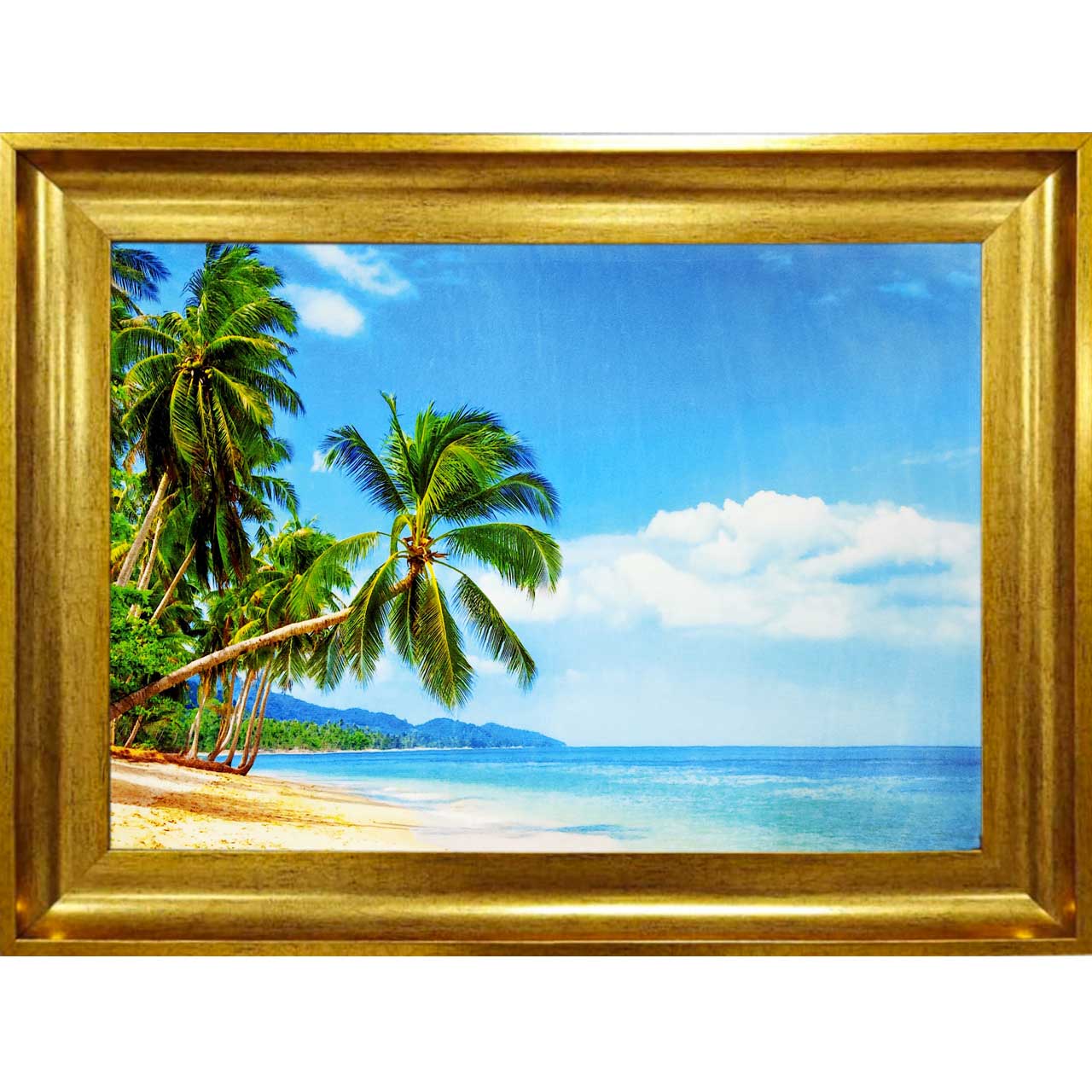 تابلو فرش طرح منظره درخت نخل و ساحل زیبا کد 10223 سایز 100*70 سانتی متری