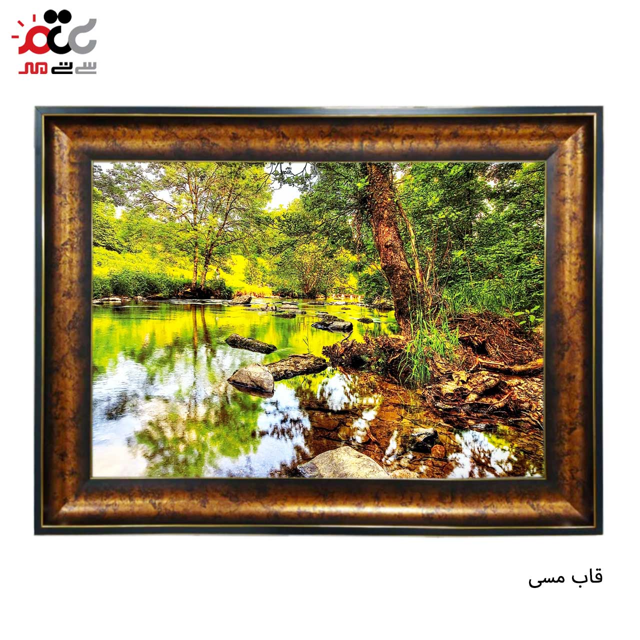تابلو فرش طرح منظره رود خانه در جنگل کد 10285 سایز 100*70 سانتی متری