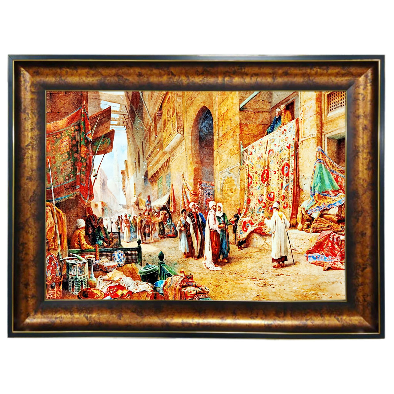 تابلو فرش طرح منظره بازار فرش قاهره کد 10265 سایز 100*50 سانتی متری