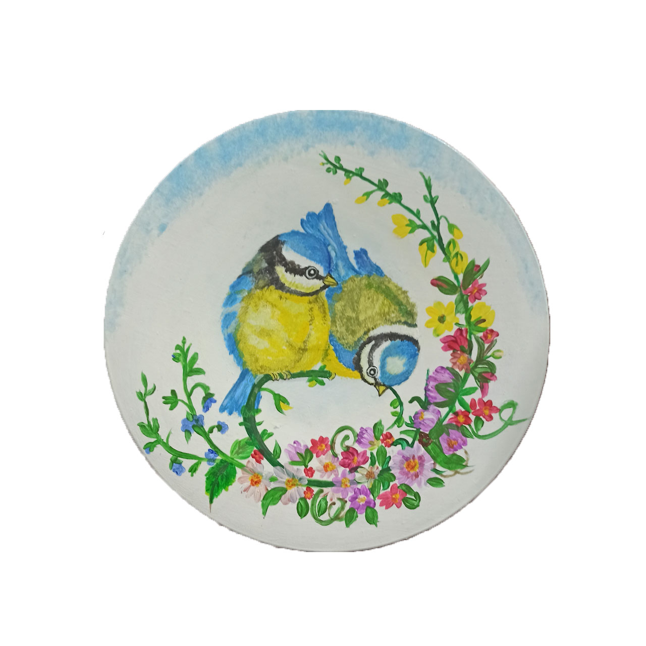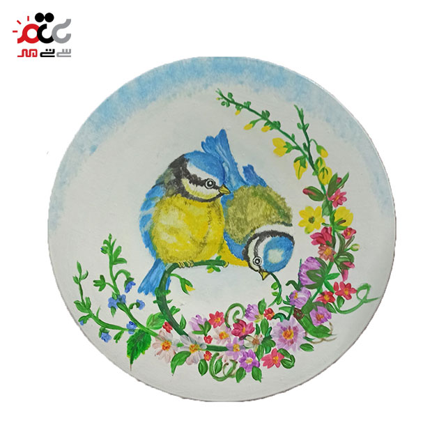 بشقاب دیوارکوب سفالی طرح گل و مرغ سایز بزرگ